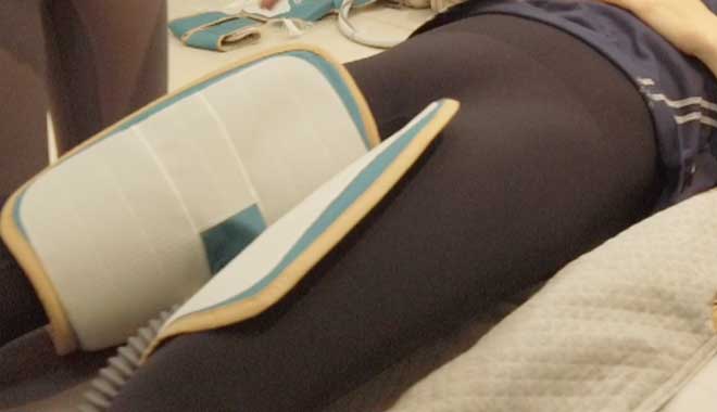 The thigh compression sleeve needs to be positioned first